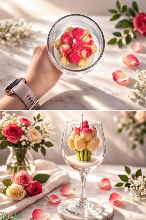 🌷 Virágcsokor gyertya elegáns borospohárban 🌷
