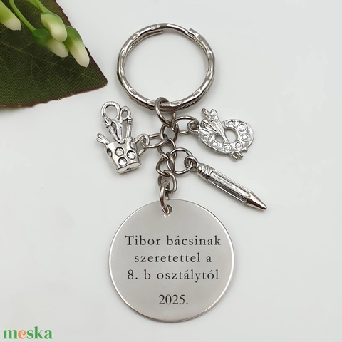 Ajándék rajztanároknak ballagásra, pedagógusnapra, tanév végére - Gravírozott szöveges ballagási kulcstartó 2.