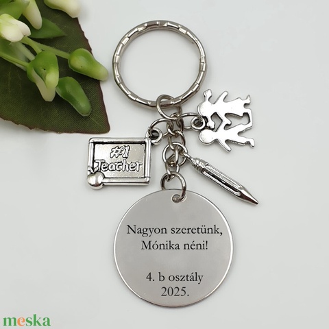 Ajándék tanító néniknek ballagásra, pedagógusnapra, tanév végére - Gravírozott szöveges ballagási kulcstartó 3.