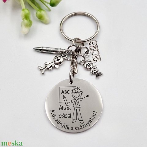Ajándék tanító néninek ballagásra, pedagógusnapra, tanév végére - Gravírozott grafikás ballagási kulcstartó 5_15.