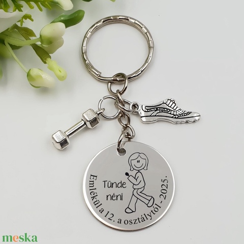 Ajándék testneveléstanárnőnek ballagásra, pedagógusnapra, tanév végére - Gravírozott grafikás ballagási kulcstartó 3_30.