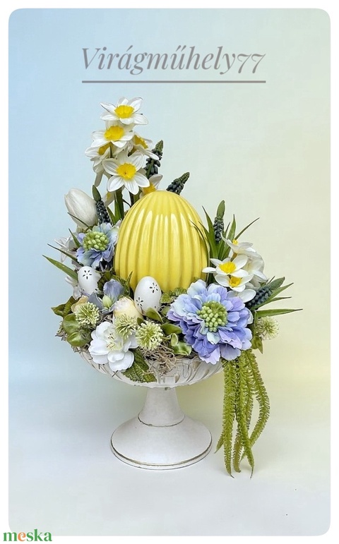 - Anyag/Összetevő fém tál, kerámia kosár, művirágok