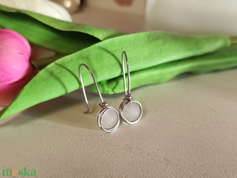 Egyedi, kézzel hajlított nemesacél fülbevaló rózsakvarccal!