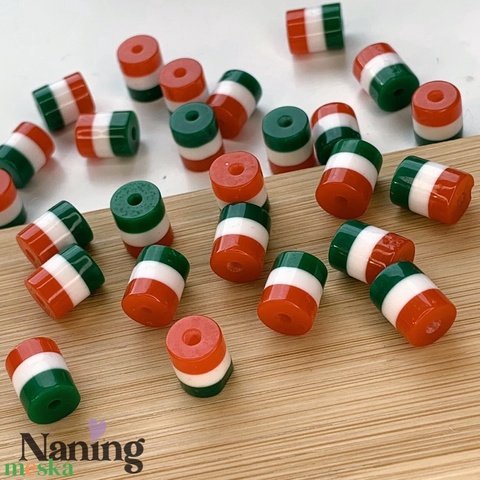 20db akril gyöngy – 8x10mm – piros-fehér-zöld