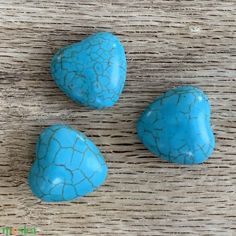 Howlite(türkinit) szív - 3db - kék színű - fúrt szív - 17-18mm