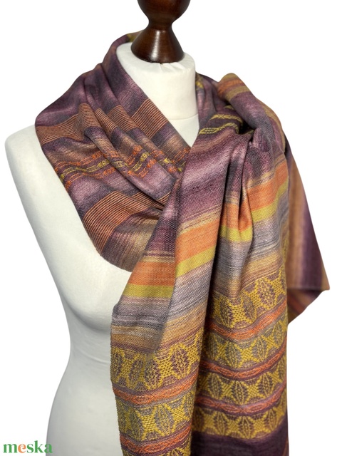 Kézzel szőtt Mályva - Sárga Selyem Merino kendő, Elegáns női kiegészítő