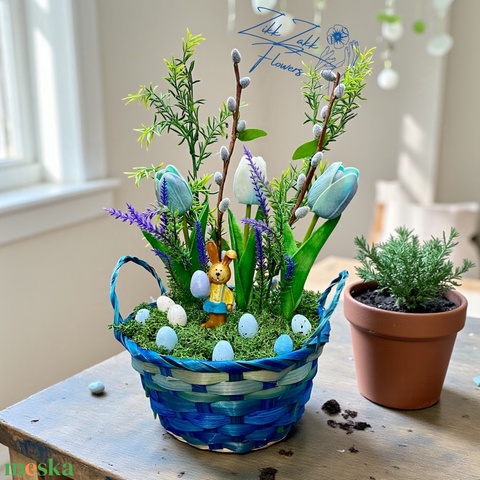 Húsvéti Kosaras Kompozíció – Kék Tavaszi Dísz