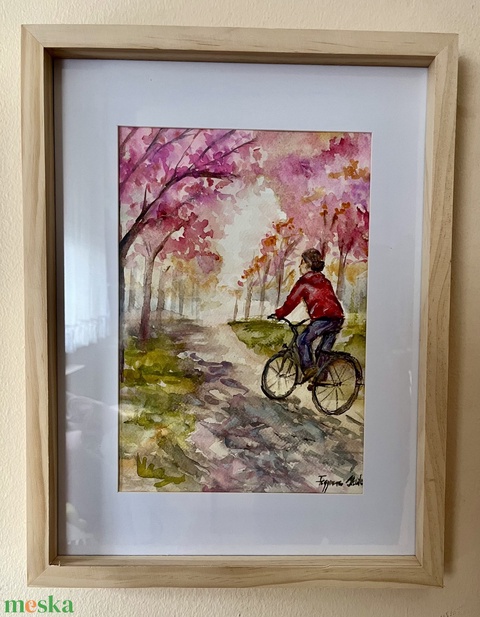 Virágzó út akvarell festmény