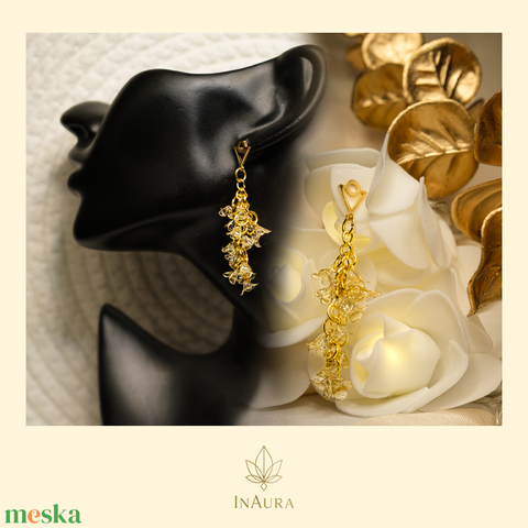 Arany színű, üvegvirág hatású lógós fülbevaló