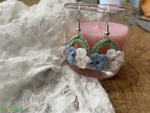 Romantikus virágos horgolt fülbevaló – pasztell árnyalatok