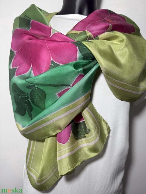 Anyák napi ajándék – kézzel festett selyemsál tavaszi virágokkal