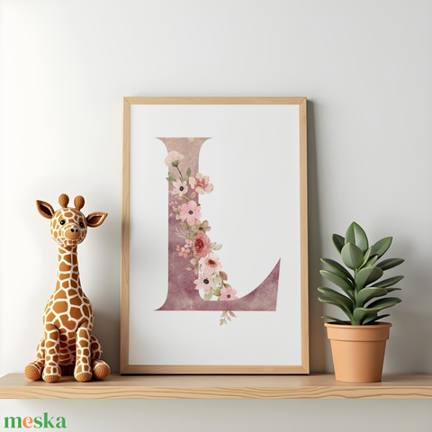 művészet, grafika & illusztráció, digitális, viragos, monogram, betu, nevreszolo, ajandek, gyerekszoba, dekoracio, falikep, akvarell, digitalis, modern, boho, lanyka, baba, pellart