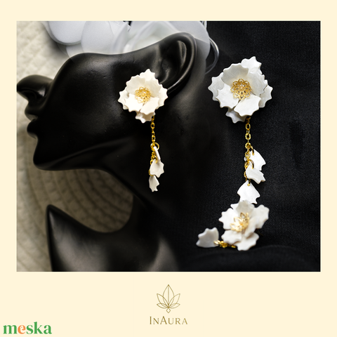 Fehér pipacs asszimetrikus lógós fülbevaló