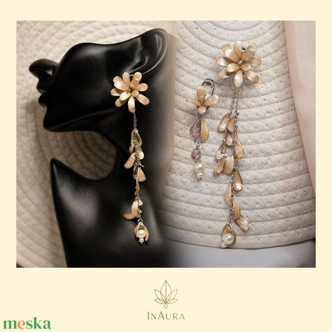 Bézs virágos designer fülbevaló