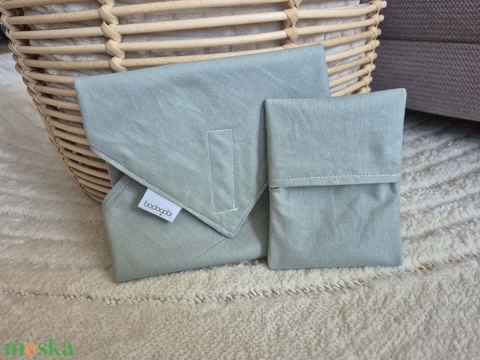 Zöld újraszalvéta apró tokkal, belül vízzáró réteggel
