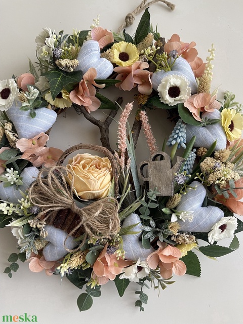 Ajtódísz kosárkával szivecskékkel tavasz-nyár