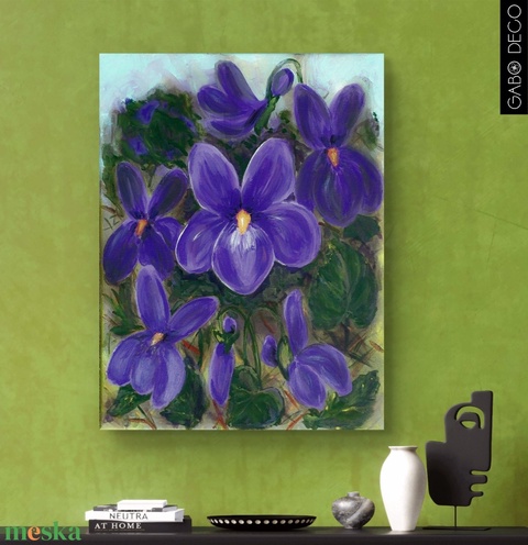 Ibolyás, tavaszi akril festmény, vászonkép. Lila ibolya