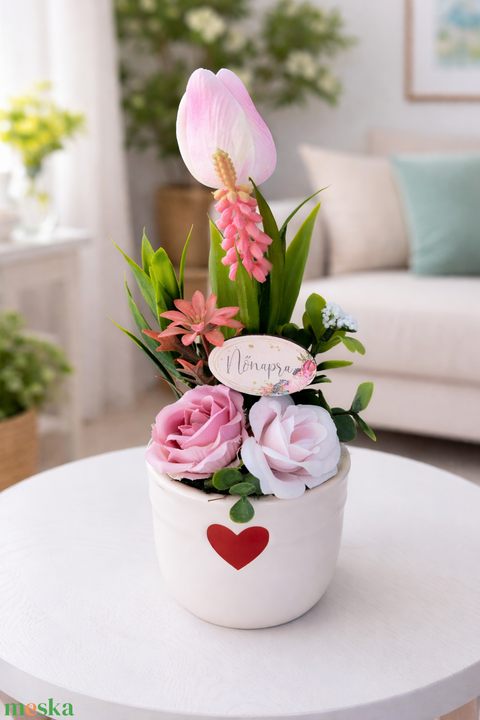 Halvány rózsaszín kaspós kis asztaldísz