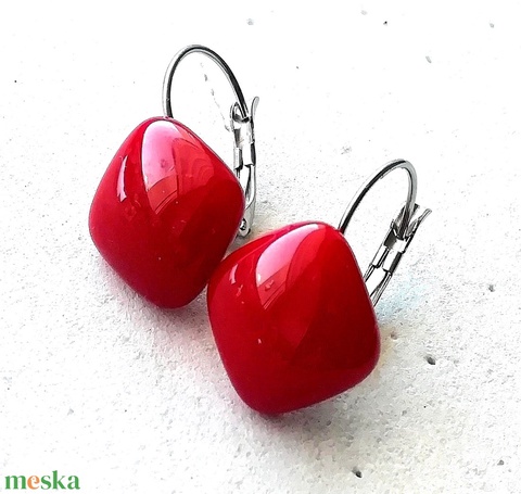 NEMESACÉL! Mélypiros kocka üveg fülbevaló, ajándék lányoknak, nőknek névnapra,születésnapra.