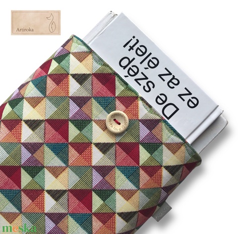Színes háromszögek mintás könyvtok, ebook tok, választható zárral