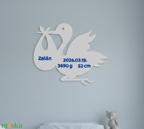 Egyedi 3D Nyomtatott Gólya Névtábla – Születési Adatokkal, 3D Falidekoráció Gyerekszobába