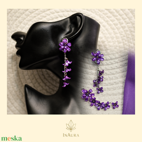 Lila virágos lógós fülbevaló