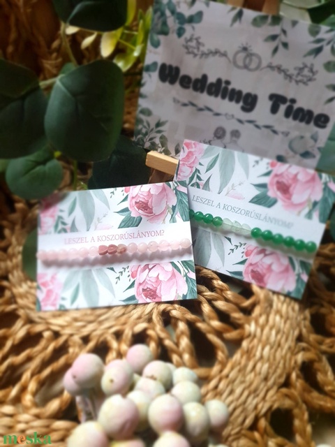 Koszorúslány felkérő ásványkarkötő kártyával