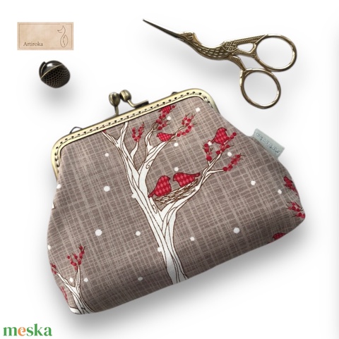 Bronz keretes pénztárca, fészekrakó madarak mintával
