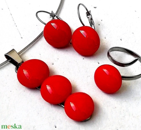 AKCIÓ! NEMESACÉL! Meggypiros kavicsok üvegékszer szett.