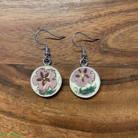 Mentett porcelán darabok - virágos fülbevaló - nemesacél, lógós