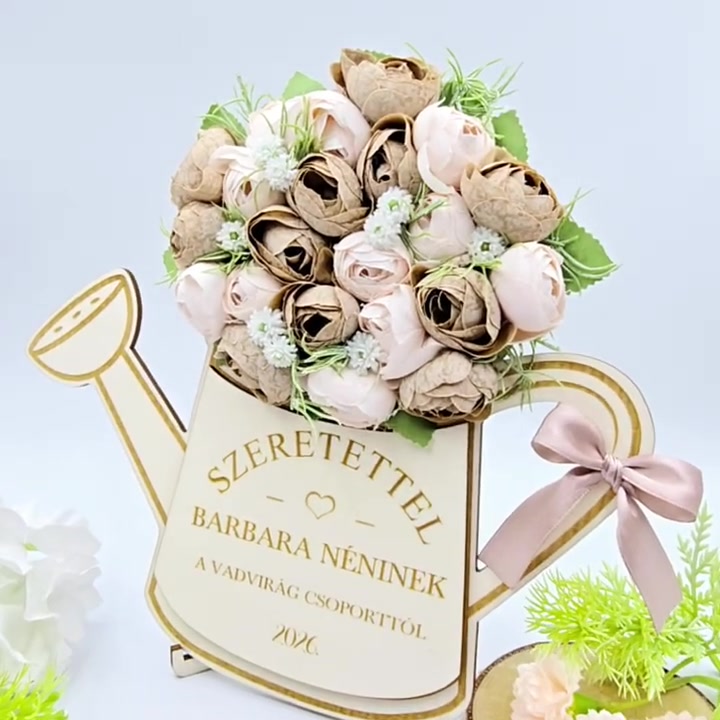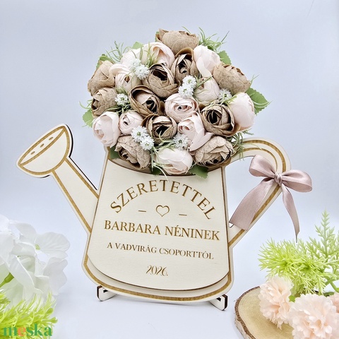 Ajándék óvó néninek, tanító néninek - selyemvirágokkal díszített egyedi feliratos öntözőkanna 12.