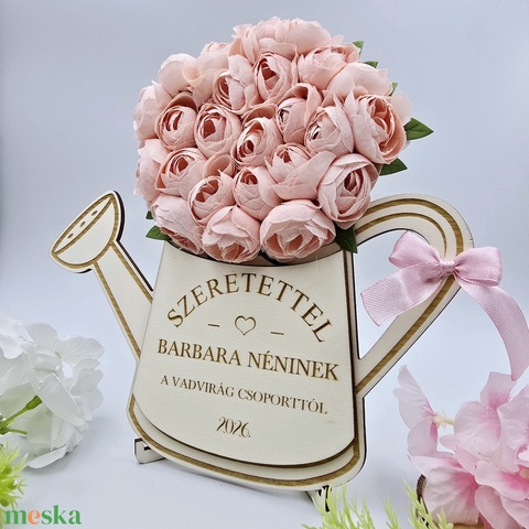 Óvó néninek, tanító néninek ajándék - selyemvirágokkal díszített egyedi feliratos öntözőkanna 13.