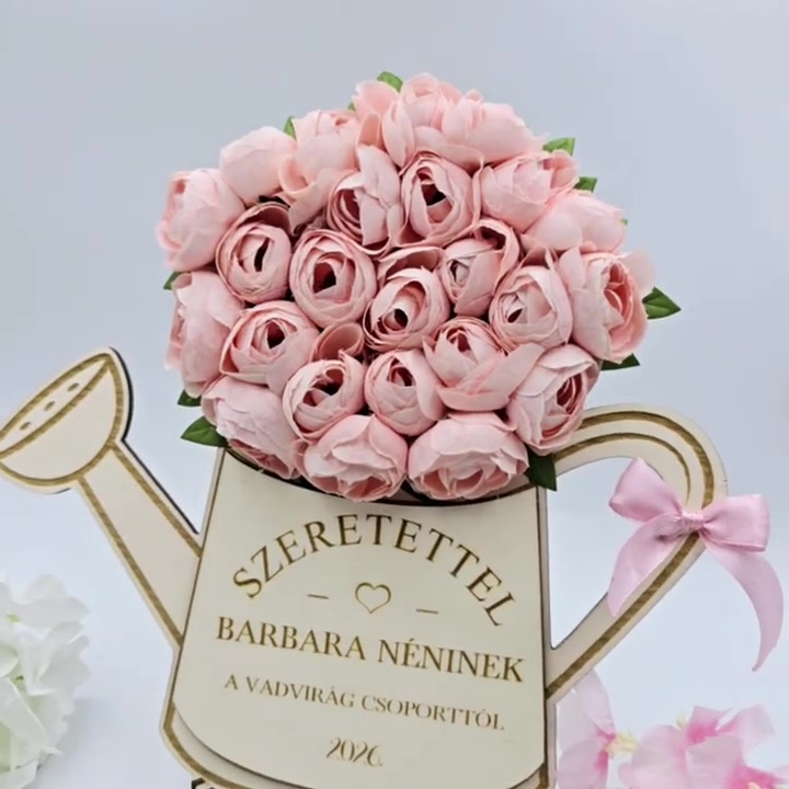 Ajándék óvó néninek, tanító néninek - selyemvirágokkal díszített egyedi feliratos öntözőkanna 13.