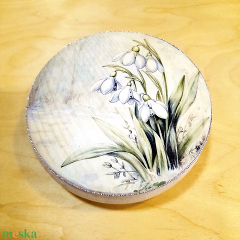 - Anyag/Összetevő fadoboz, vizes bázisú lazúr, rizspapir, vizes bázisú lakk, ezüstfonal