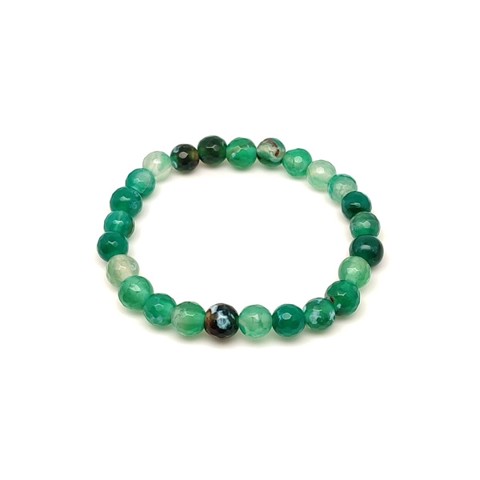 Fazettált zöld-fehér foltos achát golyós gyerek ásvány karkötő 6mm