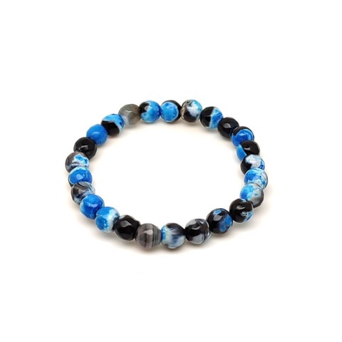 Fazettált kék-fekete achát golyós gyerek ásvány karkötő 6mm