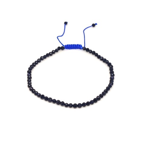 Fazettált kék goldstone golyós ásvány karkötő csúszócsomóval 4–5mm