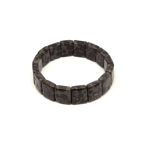 Szürke leopárd kő téglalap ásvány karkötő 16×13mm