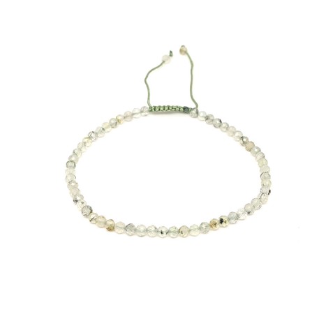 Fazettált prehnit golyós ásvány karkötő csúszócsomóval 4–5mm