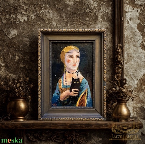 Kormi a hermet - Eredeti Akril festmény Szép régi keretben - Kormi, Macska, cica - Laczó Ágnes