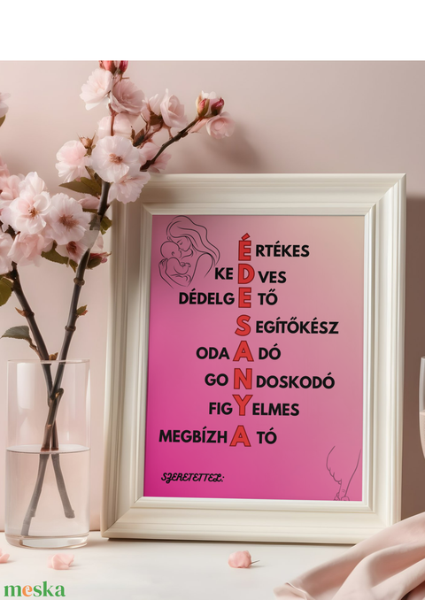 Névnapra, szülinapra és anyák napjára is tökéletes ajándék egy képkeretbe vagy egy közös fotó mellé.