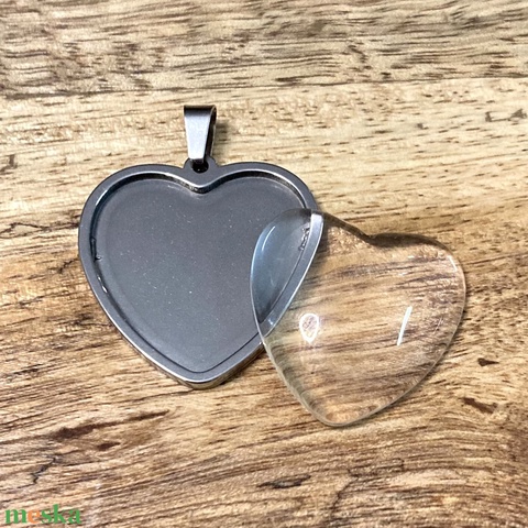 Nemesacél medálalap szett üveglencsés nyaklánchoz - szív, Nőnap, Anyák napja