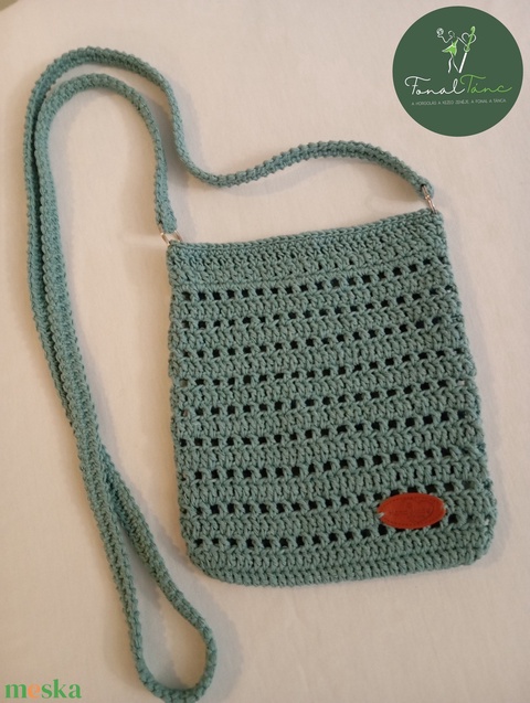 Egyedi horgolt türkiz táska