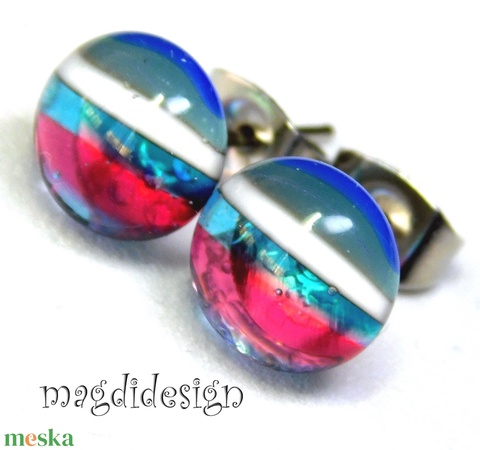 Csíkosüvegékszer stiftes fülbevaló