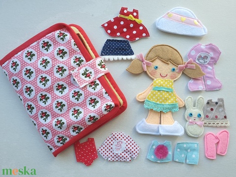 Pöttyös Panni öltöztetős baba kisnyuszival és ruhákkal- AZONNAL VIHETŐ!