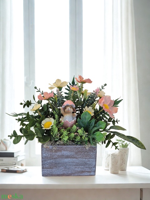 Húsvéti asztaldísz nyuszival – tavaszi KENDEKOR dekoráció dobozban