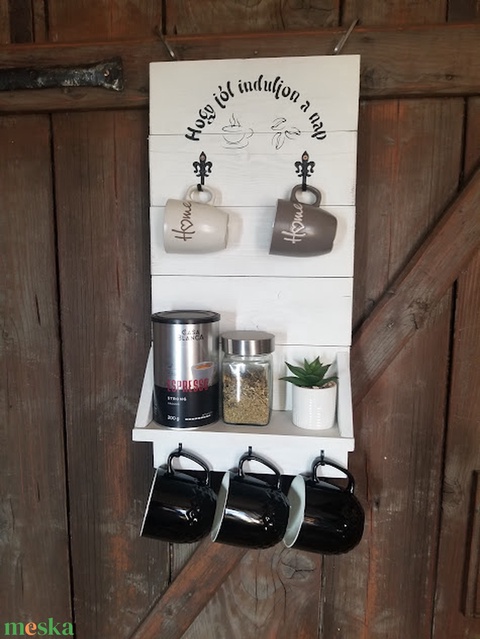 Egyedi fali kávéspolc és bögretartó