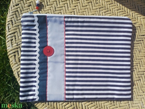 Kék-fehér csíkos, gombos neszesszer