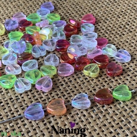 30db szivecske – akrilgyöngy - 9mm – AB fényű vegyes színek