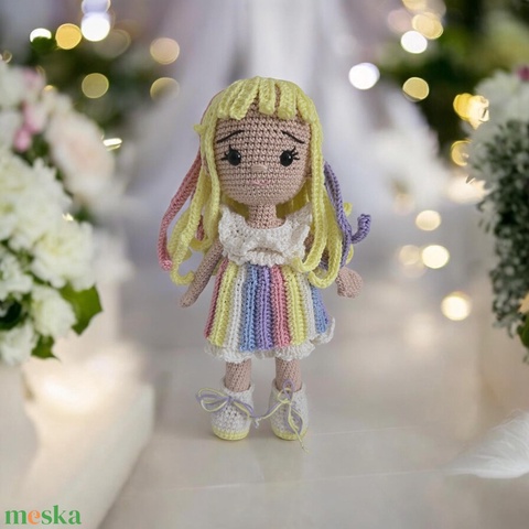 Horgolt szivárványka baba